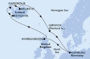 På vägen till/från Island besöker ni även vackra Kirkwall och Invergordon i Storbrittanien innan ni slutligen återvänder till Hamburg.