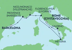 Vissa avgångar börjar i Rom och avslutas i Barcelona. Kontakta oss för mer information.
