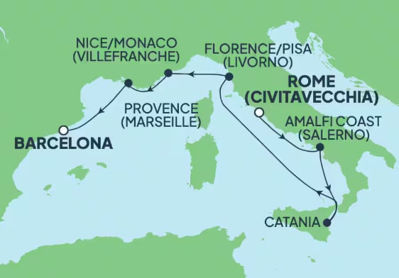 Vissa avgångar börjar i Barcelona och avslutas i Rom. Kontakta oss för mer information.